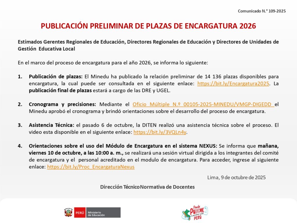 ENCARGATURA 2026 – CRONOGRAMA, RESOLUCIÓN Y VALIDACIÓN DE PLAZAS Oct 9, 2025 UGEL PAUCARTAMBO 504 Views CRONOGRAMA Y RESOLUCIÓN Share on Facebook Twitter Linkedin